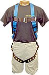 Adjustable chest strap full body harness is standard with Back D-Ring. The 5250 Series Harness offers universal fit. It is adjustable at five points. The shoulder buckles feature gator grips which are easy to adjust and hold their place better. The chest strap connects with Easy Pass quick connect mating buckles. Comes with grommet leg straps. The back D-Ring is adjustable for better positioning between the user's shoulders. A variety of D-Ring configurations are available, including shoulder, front and hip D-rings. This harness meets all applicable OSHA and ANSI standards. Also available in Sizes S & XL.