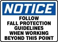 Personal Protective Equipment Safety Signs. NOTICE FOLLOW FALL PROTECTION GUIDELINES WHEN WORKING BEYOND THIS POINT. 10" x 14" Dura-Plastic Sign